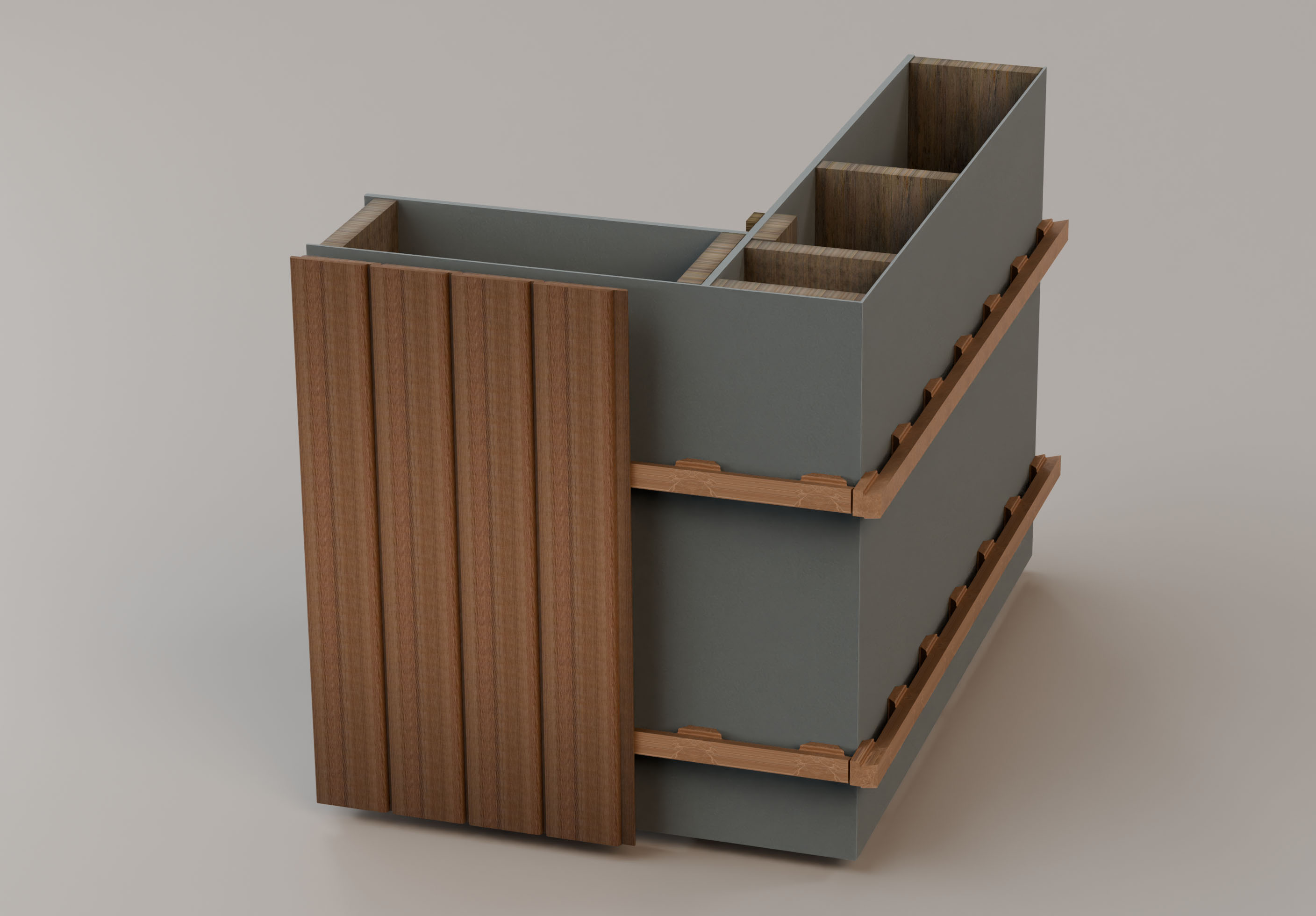 Disclaimer: Bovenstaande afbeeldingen zijn uitsluitend bedoeld als algemene richtlijn voor de verwerking van Mclad® V18-NSG/SG ventilatieregels, in combinatie met gevelbekleding en vormen geen bindend bouwkundig advies. De opbouw van de gevel als geheel dient te voldoen aan de geldende wet- en regelgeving, waaronder het Besluit bouwwerken leefomgeving (Bbl). Hierbij kan gebruik worden gemaakt van bestaande, algemeen geaccepteerde rapporten en richtlijnen uit de bouwpraktijk, zoals het SKH-attest (SKH-065). Het gebruik en de toepassing vallen onder de verantwoordelijkheid van de aannemer of andere bouwprofessionals. Wij aanvaarden geen enkele aansprakelijkheid voor schade of gebreken die voortvloeien uit een incorrecte gevelopbouw.