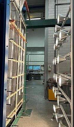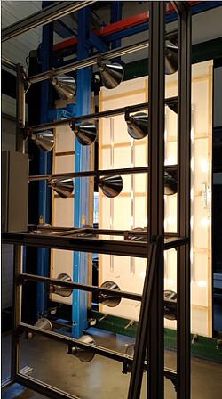 Testopzet - We voerden een vergelijkingstest uit met vijf soorten achterhout-opstellingen. De ventilatie werd gevisualiseerd met behulp van rook in een met een IR-lamp opgewarmde spouw. Door de warmteopbouw achter de plexiglazen bekleding ontstond het schoorsteeneffect. De gevelelementen hadden een hoogte van 3100 mm en een breedte van 600 mm. Conform het Bouwbesluit is de luchtinlaat aan de onderzijde beperkt tot een maximale opening van 10 mm. Deze beperking maakte de verschillen in ventilatie tussen de opstellingen extra zichtbaar.